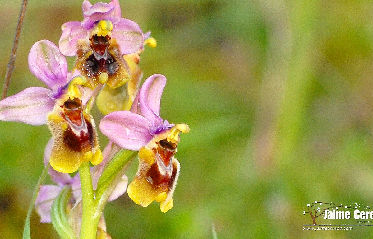 Esta orquídea, junto a otras de su familia, ha adquirido una forma peculiar de polinización, su flor y más concretamente su labelo tiene una forma que imita las hembras en celo de algunas especies de himenópteros (Abejas, avispas…), florece antes que estas hembras entren en celo por lo que los machos, atraídos por estos colores, intentan copular con las flores y se impregnan de multitud de polen que trasladarán a otra flor cuando los insectos vuelvan a repetir el intento.